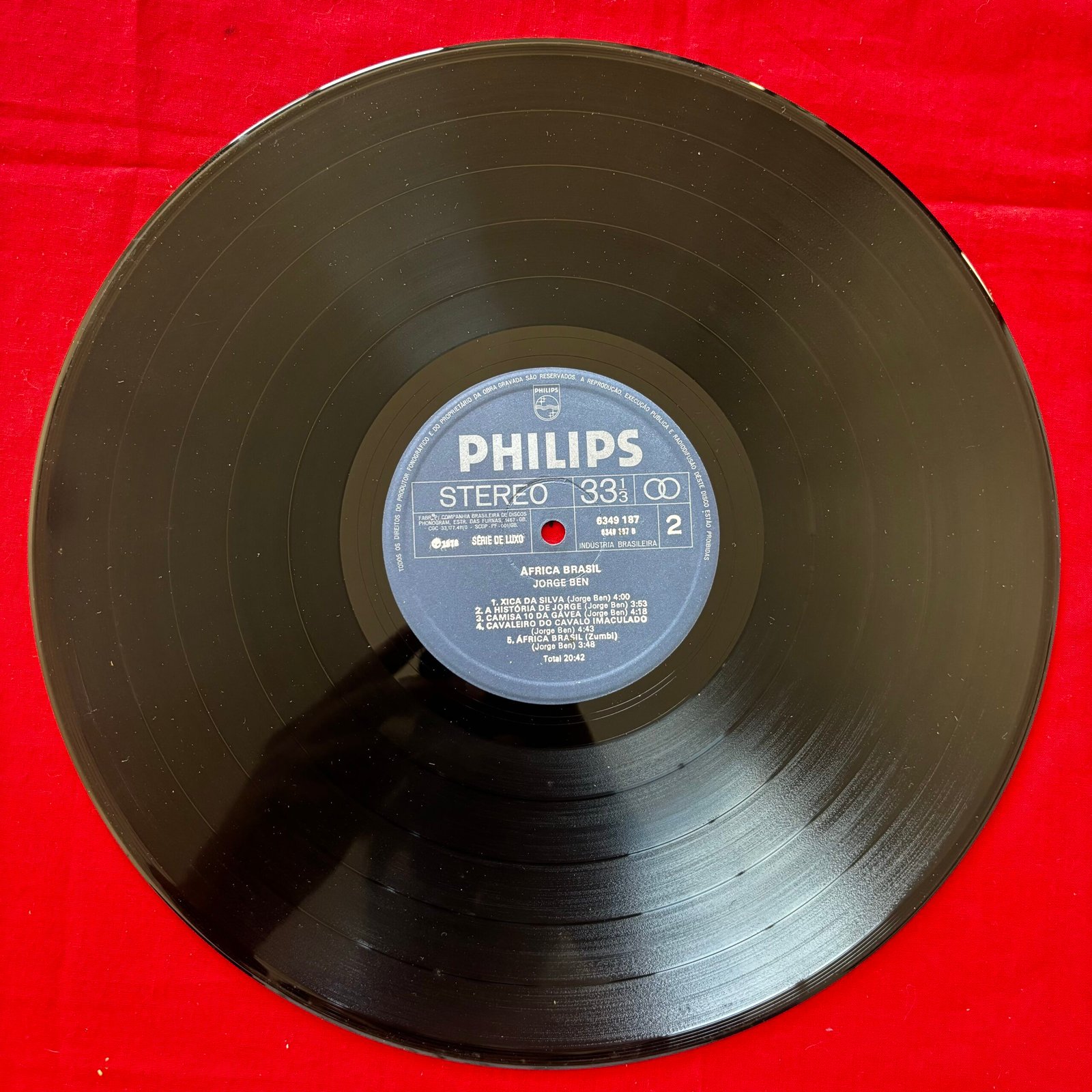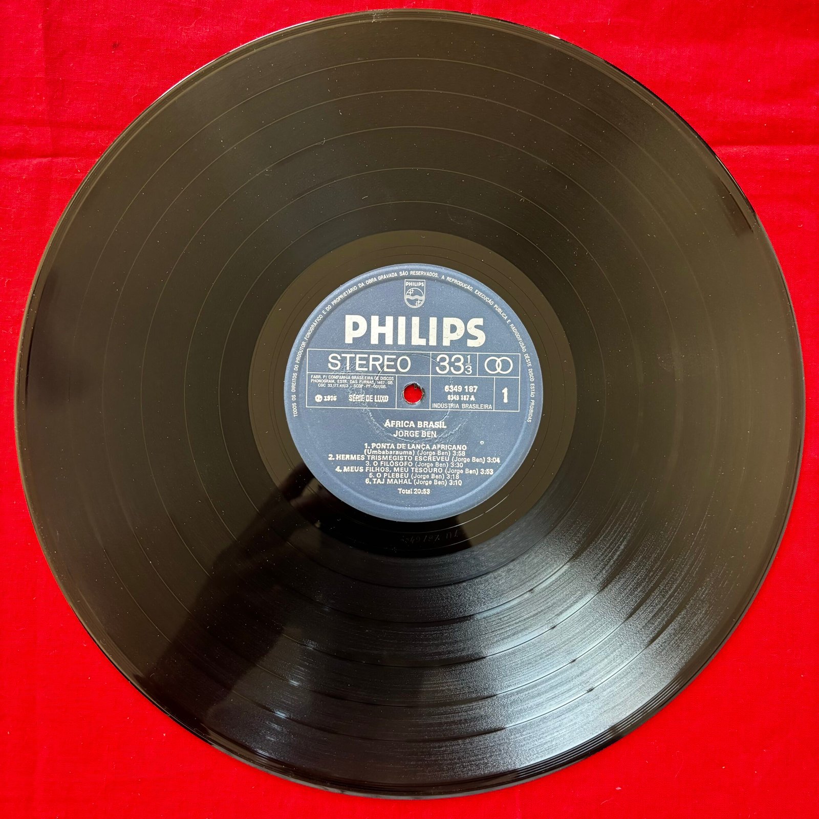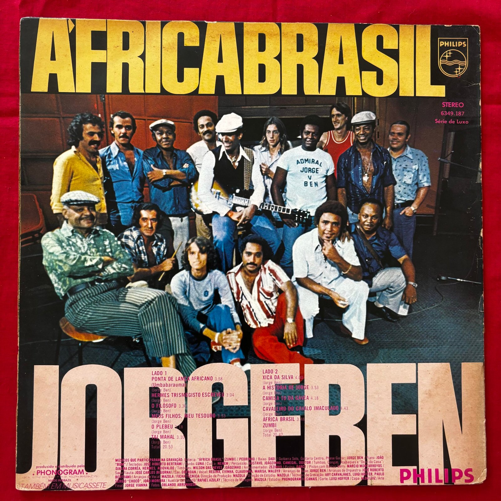 LP Original de época em perfeitas condições de capa e mídia. Label: Philips – 6349 187, Philips – 6349.187 A1 Ponta De Lança Africano (Umbabarauma) 3:58 A2 Hermes Trismegisto Escreveu 3:04 A3 O Filósofo 3:30 A4 Meus Filhos, Meu Tesouro 3:53 A5 O Plebeu 3:18 A6 Taj Mahal 3:10 B1 xica Da Silva 4:00 B2 A História De Jorge 3:53 B3 Camisa 10 Da Gávea 4:18 B4 Cavaleiro Do Cavalo Imaculado 4:43 B5 África Brasil (Zumbi)